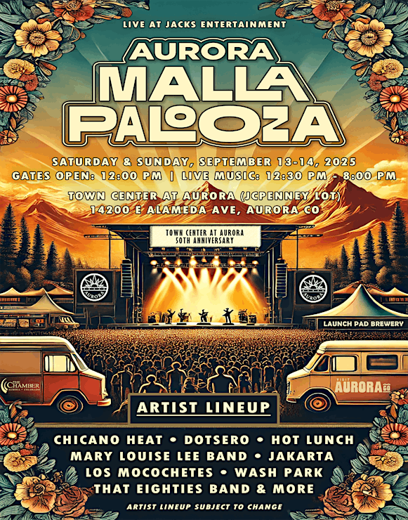 Get ready to dance, sing, and celebrate 50 years of the Town Center at Aurora at Aurora Mallapalooza— a two-day outdoor party like no other! We’re throwing it back and turning up the volume with live bands, DJs, food vendors, games, and community vibes all weekend long.